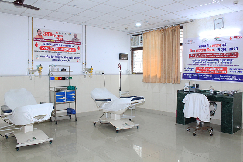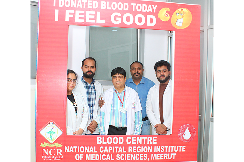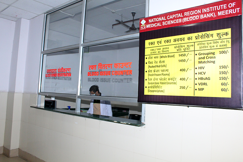 Blood Center is located in the National Capital Region Institute of Medical Sciences, Meerut Hospital Block 1st Floor and Open 24 hrs. x 7 days at under Pathology Department.